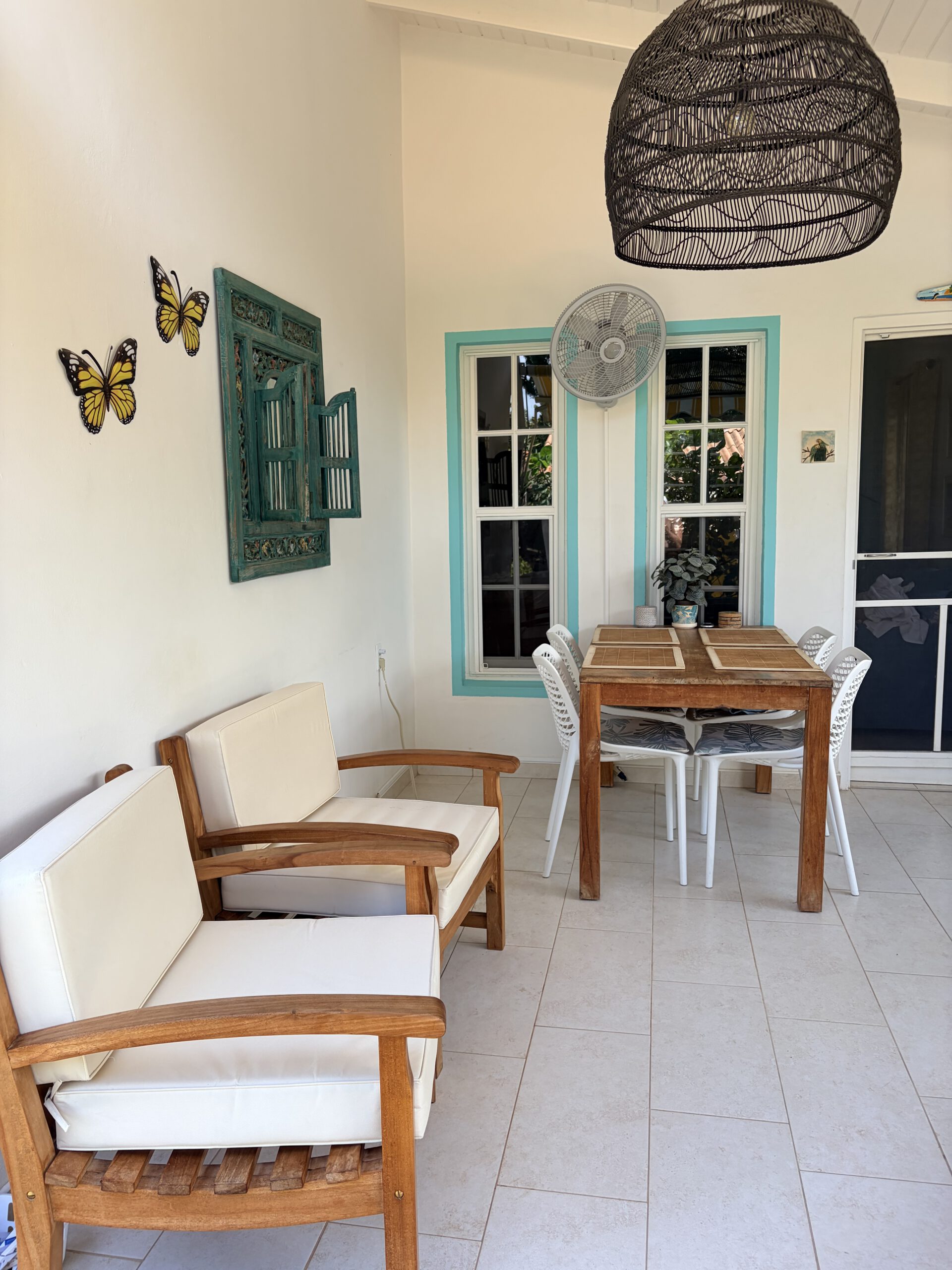 The property had everything I needed for a relaxing week in Curaçao. I wanted some place that was quiet and peaceful, this was it. The bungalow has very nice decor and all of the furnishings are in excellent shape. The kitchen has all the requirements in order to cook your own meals and there is a washer that comes in handy so you can pack a little lighter. The bed was extremely comfortable and the AC kept the bedroom plenty cool during the evening. The bathroom has a very nice shower with warm water. The ceiling fan in the living room kept the bungalow very cool. There had been an absence of breeze the first few days, but the pedestal fan provided helped to alleviate any excessive heat. Danny provides a cooler for day trips to the beach and this came in handy for trips to playa Grote Knip and Porto Mari. The resort itself is away from the hustle and bustle of Willemstad, but is close enough for a a day or evening in the city. Mangusa Hypermart is about 8 minutes away from the property. For those that prefer Centrum or Van den Tweel, these are approximately 15 minutes away. There are also a few tokos and mini marts a very short drive from the resort. Danny was quick to respond to questions and also provided detailed information in both English and Dutch. His property manager was quick to get me checked in. She is very polite and pleasant. I was very happy with this property and resort amenities. The pool is fantastic and a quick minute walk from the bungalow.